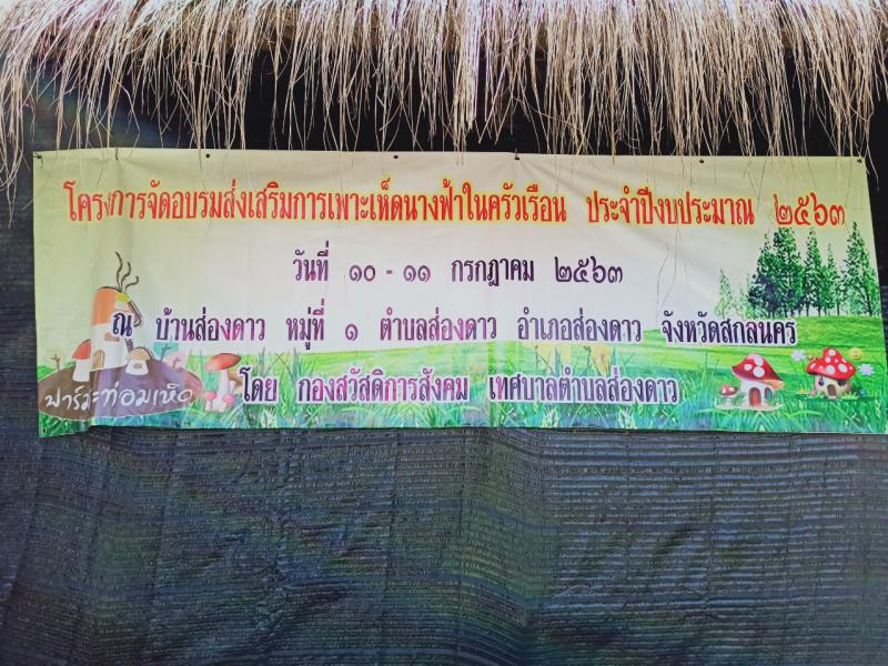 กองสวัสดิการและสังคม เทศบาลตำบลส่องดาว ได้จัดทำโครงการจัดอบรมเพาะเห็ดนางฟ้าในครัวเรือน ประจำปี 2563