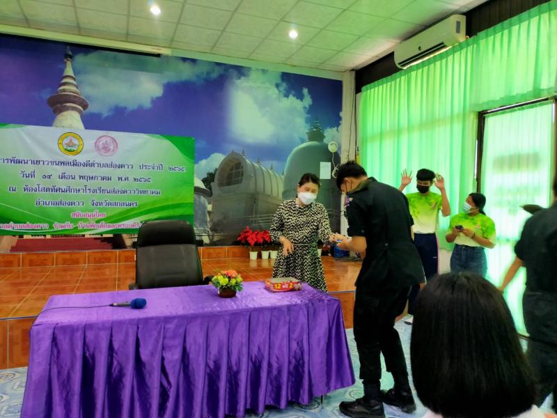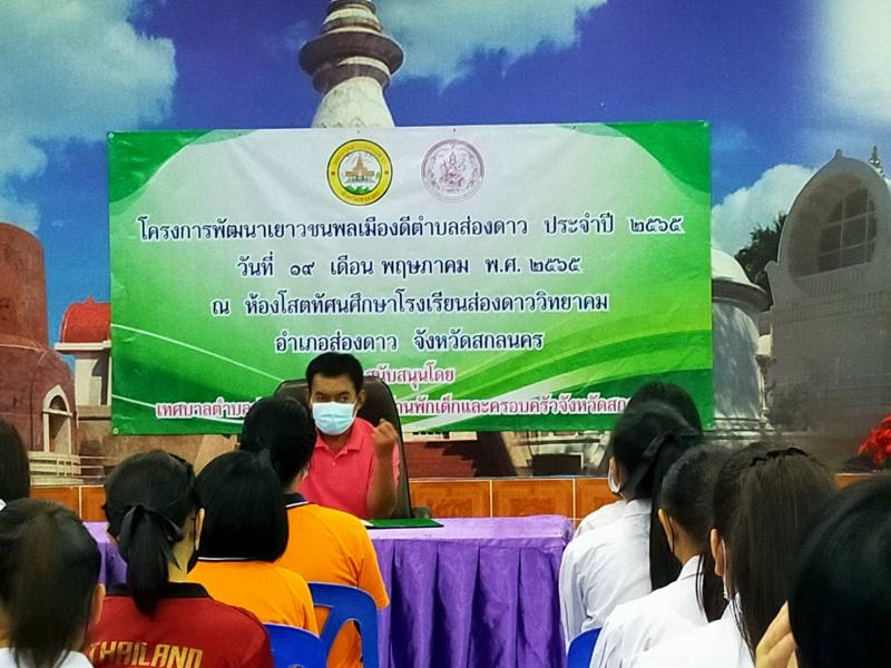 วันที่ 19 พ.ค. 2565 นายธงชัย ไชยรบ นายกเทศมนตรีตำบลส่องดาว เป็นประธานในพิธีเปิดงานโครงการพัฒนาเยาวชนพลเมืองดีตำบลส่องดาว ประจำปี 2565