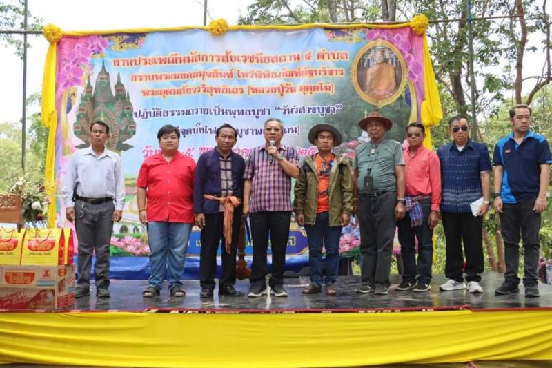 รายละเอียด : เทศบาลตำบลส่องดาว นำโดยนายธงชัย ไชยรบ นายกเทศมนตรีตำบลส่องดาว คณะผู้บริหาร สมาชิกสภาฯ หัวหน้าส่วนราชการฯ พนักงาน ลูกจ้าง กำนัน ผู้ใหญ่บ้าน และประชาชนในเขตเทศบาลตำบลส่องดาว ร่วมงานประเพณีนมัสการสังเวชนียสถาน 4 ตำบล กราบพระมงคลมุจลินท์ ไหว้พิพิธภัณฑ์อัฐบริขาร พระอุดมสังวรวิสุทธิเถร (หลวงปู่วัน อุตตฺโม) ปฏิบัติธรรมถวายเป็นพุทธบูชา “วันวิสาขบูชา” ซึ่งกำหนดจัดระหว่างวันที่ 3 – 5 พฤษภาคม 2566 ณ วัดถ้ำพวง ตำบลปทุมวาปี อำเภอส่องดาว จังหวัดสกลนคร โดยในการจัดงานดังกล่าวเทศบาลตำบลส่องดาวได้ร่วมจัดทำโรงทาน และการอำนวยความสะดวกในการจราจรและรักษาความปลอดภัยภายในงานตลอดการจัดงาน