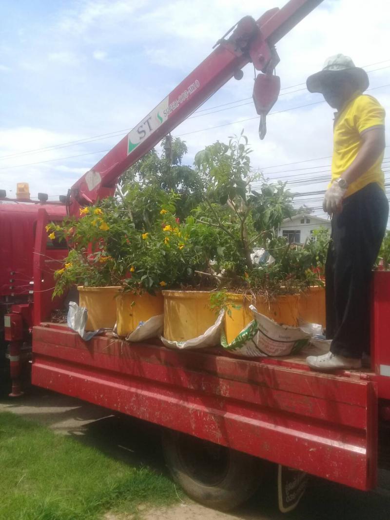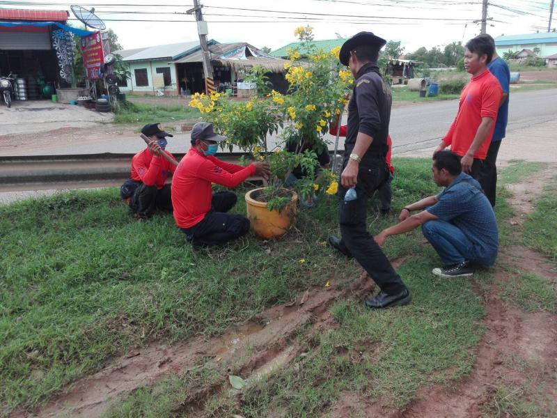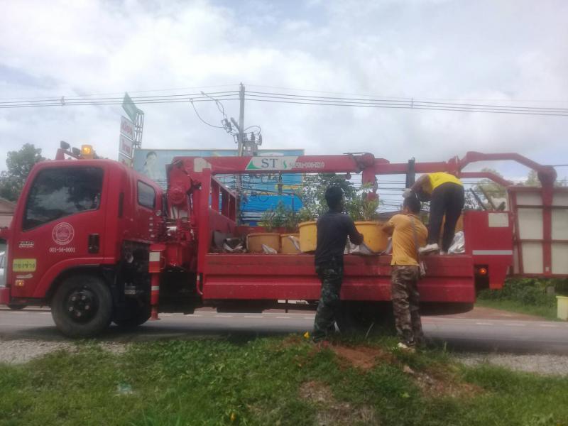 กองช่างร่วมกับทีมงานป้องกันฯ ทต.ส่องดาว ขนย้ายกระถางต้นทองอุไรออกจากพื้นที่เพื่อรอรับการขยายถนนหมายเลข สน 2021 ถนนสายบ้านหนองหลวง - ถนนสายคำบิด