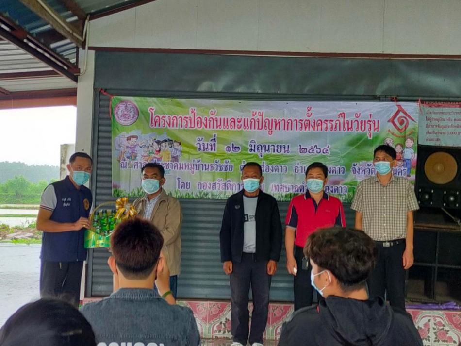นายธงชัย ไชยรบ นายกเทศมนตรีตำบลส่องดาวและคณะผู้บริหารเป็นประธานเปิดโครงการป้องกันและแก้ไขการตั้งครรภ์ในวัยรุ่น ประจำปี 2564 วันเสาร์ที่ 12 มิถุนายน 2564 ณ ศาลาประชาคมบ้านธวัชชัย ตำบลส่องดาว อำเภอส่องดาว... [14 มิถุนายน 2564]