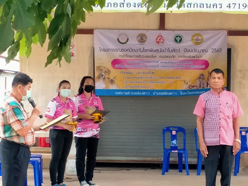 วันที่ 5 กรกฎาคม 2565 เทศบาลตำบลส่องดาว ร่วมกับปศุสัตว์อำเภอส่องดาวและสำนักงานปศุสัตว์จังหววัดสกลนคร ได้ดำเนินกิจกรรมตามโครงการรณรงค์ป้องกันโรคพิษสุนัขบ้า ประจำปีงบประมาณ 2565 ณ บริเวณลานหน้าสำนักงานสาธารณสุขอำเภอส่องดาว โดยมีนายสมศรี ชื่นใจ รองนายกเทศมนตรี รักษาราชการแทน นายกเทศมนตรีตำบลส่องดาว เป็นประธานในพิธี
