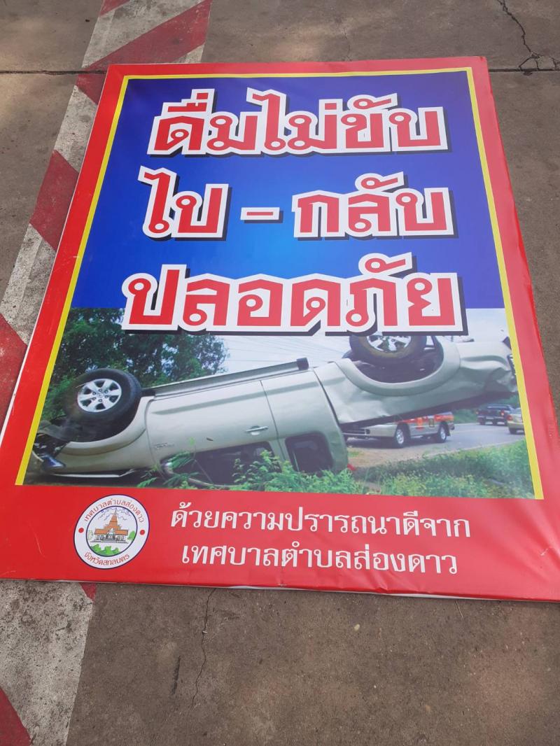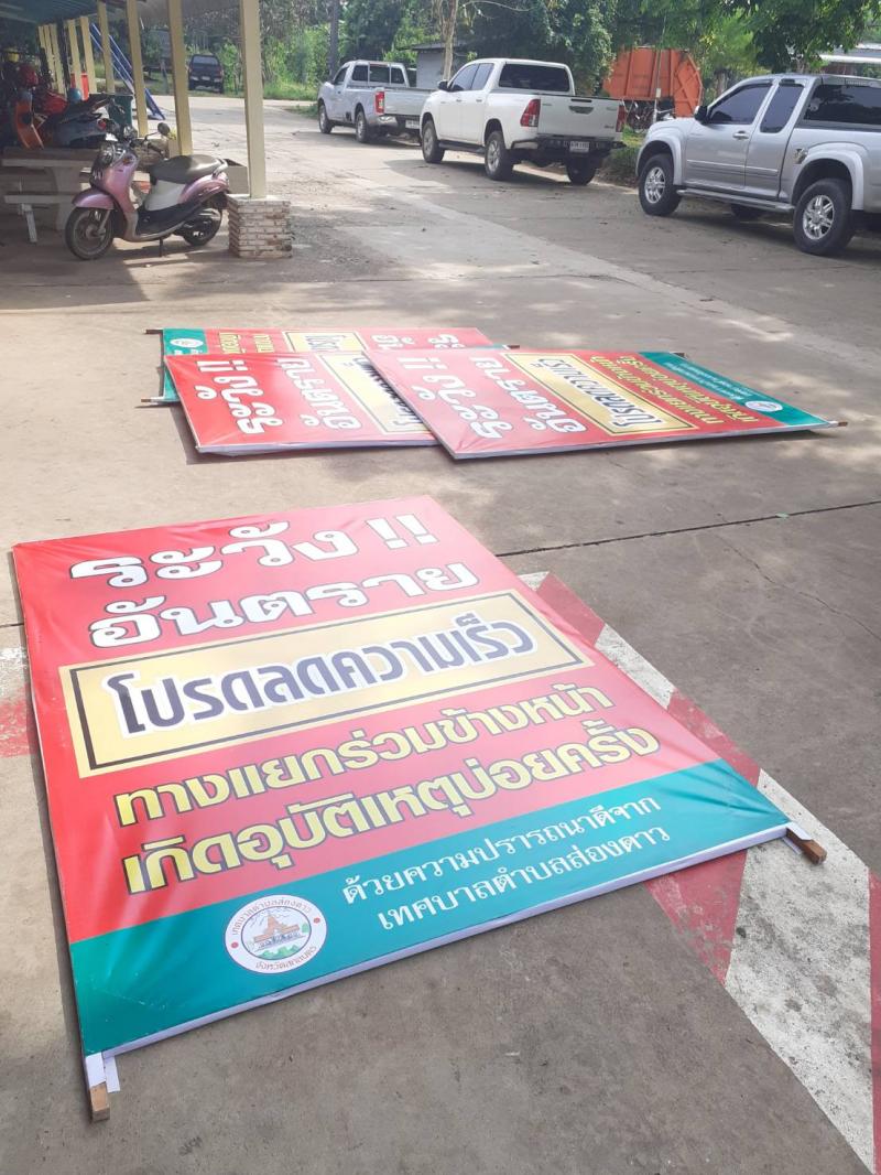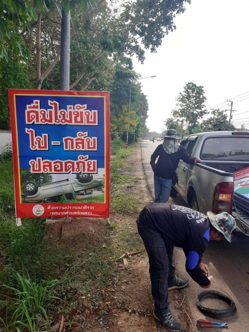 งานป้องกันฯ เทศบาลตำบลส่องดาวเตรียมความพร้อมติดป้ายลดอุบัติเหตุช่วงสงกรานต์ ประจำปี 2564 ( ช่วง 7 วันอันตราย) ตามคำขวัญที่ว่า "สงกรานต์สุขใจ ขับขี่ปลอดภัย ห่างไกลโควิด"