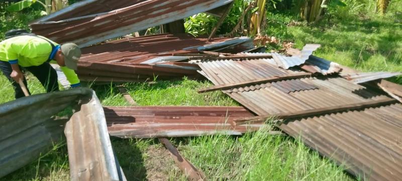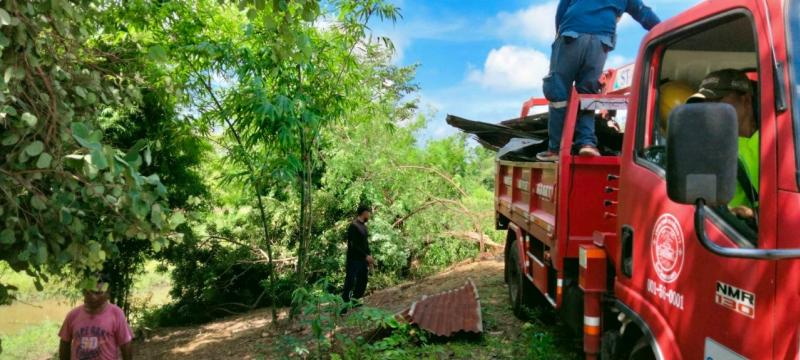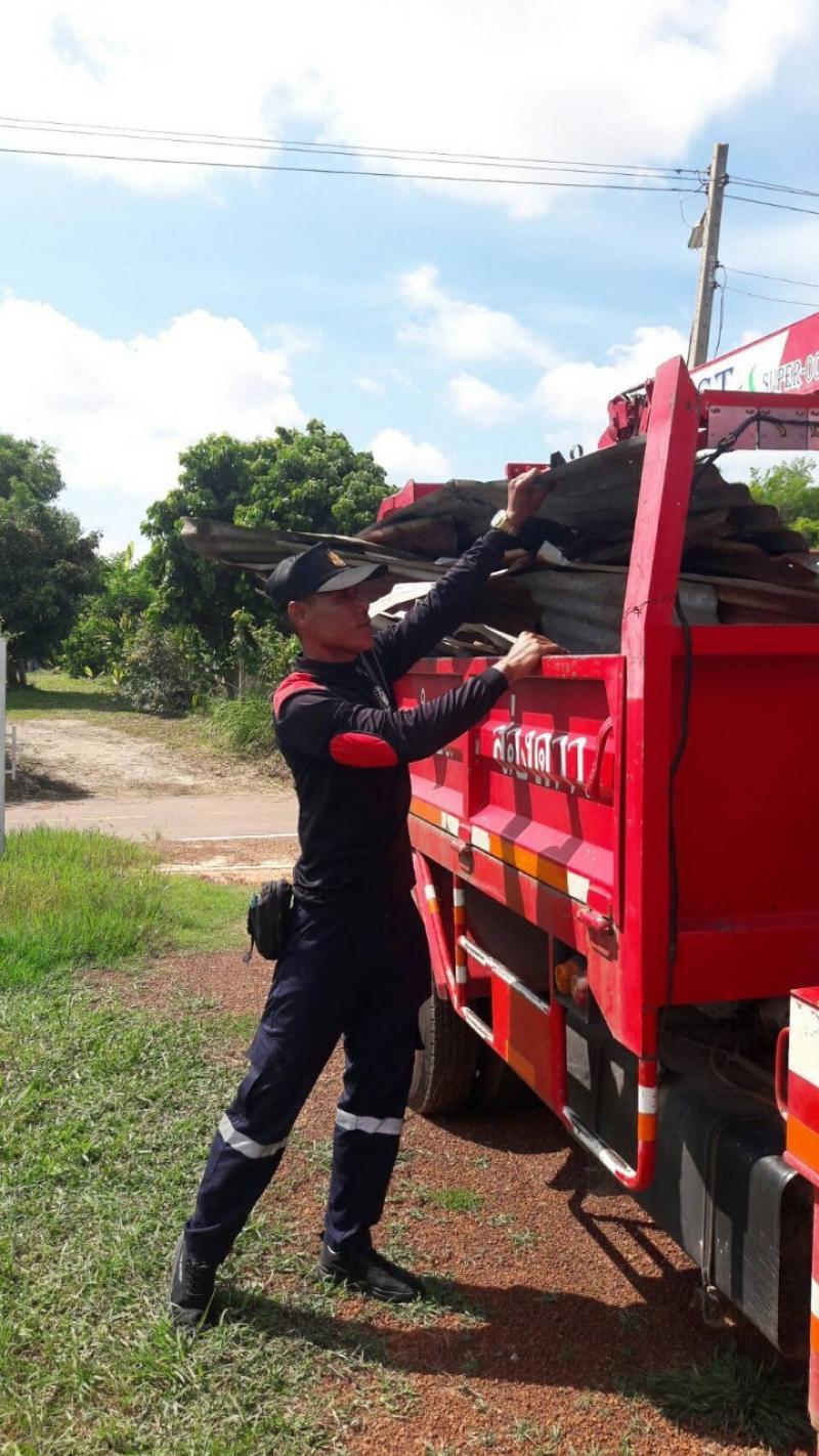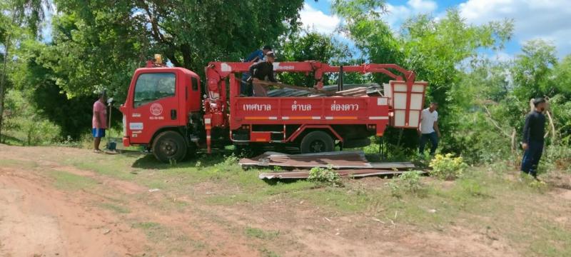 วันที่ 23 มิถุนายน 2565 เวลา 09.25 น.งานป้องกันฯ เทศบาลตำบลส่องดาวได้รับการประสานจากท่านปลัดเทศบาลตำบลส่องดาว และ ท่านสท.ลำพูน.พ่อคุณตรงแจ้งว่าสังกะสีพร้อมโครงสร้างคอกวัวของนายบุญโฮม.อุ่นแก้วปลิวมาทับพืชสวนสาเหตุจากพายุฝนฟ้าคะนองเมื้อคืนวันที่22มิถุนายน2565 หัวหน้าสำนักปลัดเทศบาลจึงได้มอบหมายให้นายศุภฤกษ์.สรศิลป์หัวหน้างานป้องกันฯ และเจ้าหน้าที่กองช่างออกตรวจสอบที่เกิดเหตุ ปรากฏว่าอยู่ในเขตพื้นที่เทศบาลตำบลส่องดาวหนองแดงจึงได้นำกำลังเก็บรื้อสังกะสีนำส่งคืนเจ้าของเป็นที่เรียบร้อย