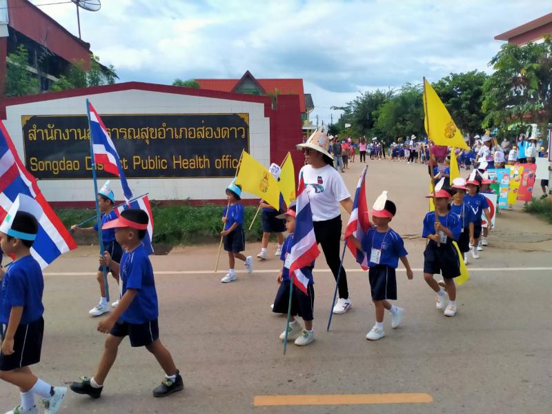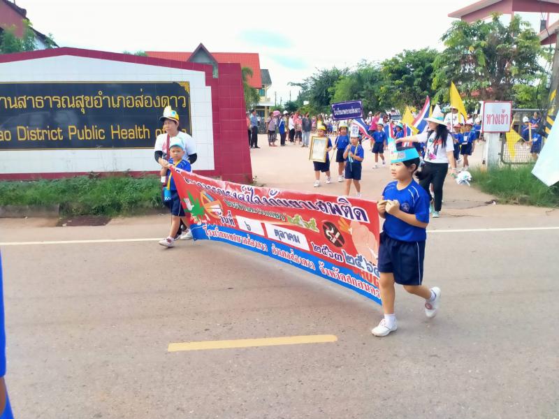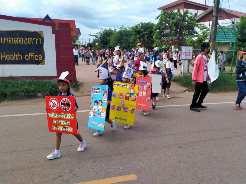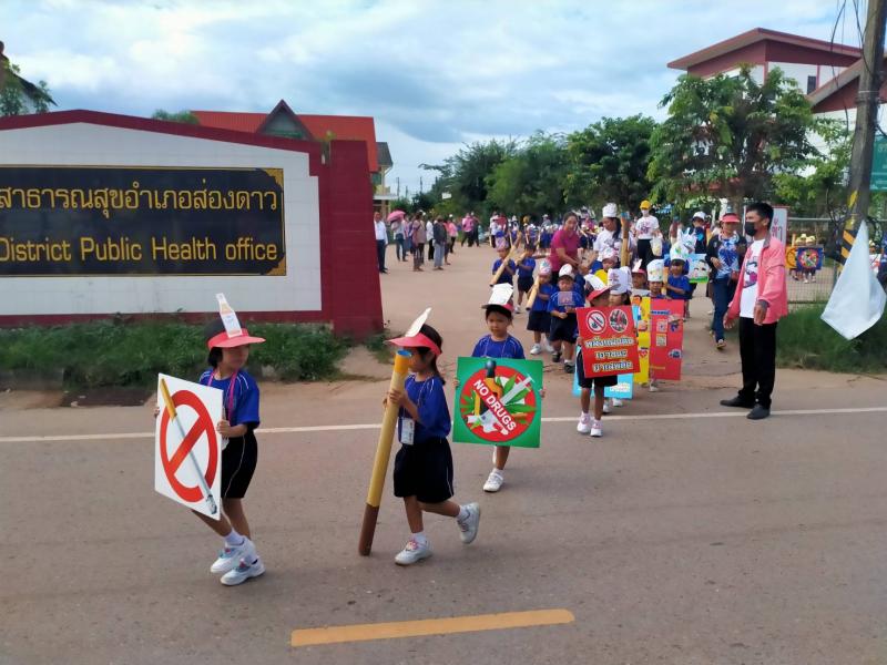 วันที่ 6 ตุลาคม 2565 นายธงชัย ไชยรบ นายกเทศมนตรีตำบลส่องดาว พร้อมคณะผู้บริหาร สมาชิกสภาเทศบาล คณะกรรมการสถานศึกษา ผอ. กรองทุกกอง ครู พนักงานลูกจ้าง เทศบาลตำบลส่องดาว ร่วมเดินรณรงค์โครงการรณรงค์ป้องกันยายเสพติด ประจำปี 2565 โดยการจัดกิจกรรมเดินรณรงค์ป้องกันยาเสพติดเพื่อให้นักเรียนทุกคนได้ประพฤติตนเป็นแบบอย่างที่ดี และสามารถดำรงชีวิตได้อย่างมีความสุขในสังคมปัจจุบัน และห่่างไกลยาเสพติด