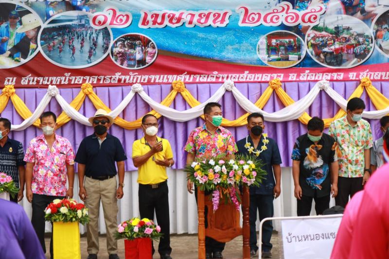 วันที่ 12 เมษายน 2565 นายธงชัย ไชยรบ นายกเทศมนตรีตำบลส่องดาว พร้อมคณะผู้บริหาร พนักงานเจ้าหน้าที่ ร่วมงานเย็นทั่วหล้ามหาสงกรานต์ สุดยอดสงการนต์อีสาน "โครงการแข่งขันแอโรบิค และส้มตำลีลา ประจำปี 2565 (ภายใต้การควบคุ้มและป้องกันการแพร่ระบาดของเชื้อโควิด 19 )