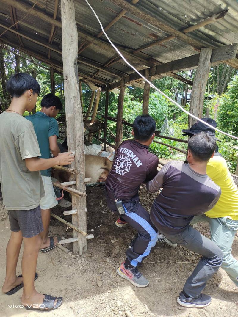 วันที่ 21 มิถุนายน 2565 เวลา 10.45 น. นายมน จำปาจันทร์ รองนายกเทศมนตรี นายชวดล อุวะไร เลขานุการนายกฯ นายวิยม คำผุด ที่ปรึกษานายกฯ นายอากาศ ไชยมีสุข หัวหน้าสำนักปลัดฯ นายธีรนิตย์ แก้วพาดี ผู้อำนวยการกองช่าง เจ้าหน้าที่กองสาธารณสุขฯ พร้อมด้วยเจ้าที่งานป้องกันฯ และเจ้าหน้าที่กองช่าง ออกตรวจสอบวัวของนางสั้น รังษี ที่ตายจากอาการป่วยโดยไม่ทราบสาเหตุ เพื่อเป็นการป้องกันการแพร่ระบาดของเชื้อโรค จึงได้ทำการฝังกลบซากวัว ให้ถูกต้องตามหลักวิชาการด้านสาธารณสุข