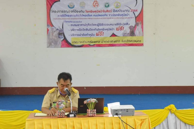 เมื่อวันที่ 21 มิถุนายน 2564 นายธงชัย ไชยรบ นายกเทศมนตรีตำบลส่องดาว พร้อมคณะผู้บริหาร สมาชิกสภาเทศบาลตำบลส่องดาว ร่วมพิธีเปิดงานโครงการรณรงค์ป้องกัน โรคพิษสุนัขบ้าในสัตว์ ปีงบประมาณ 2564 ภายใต้โครงการสัตว์ปลอดภัย คนปลอดภัย จากโรคพิษสุนัขบ้า ณ อาคารอเนกประสงค์เทศบาลตำบลส่องดาว