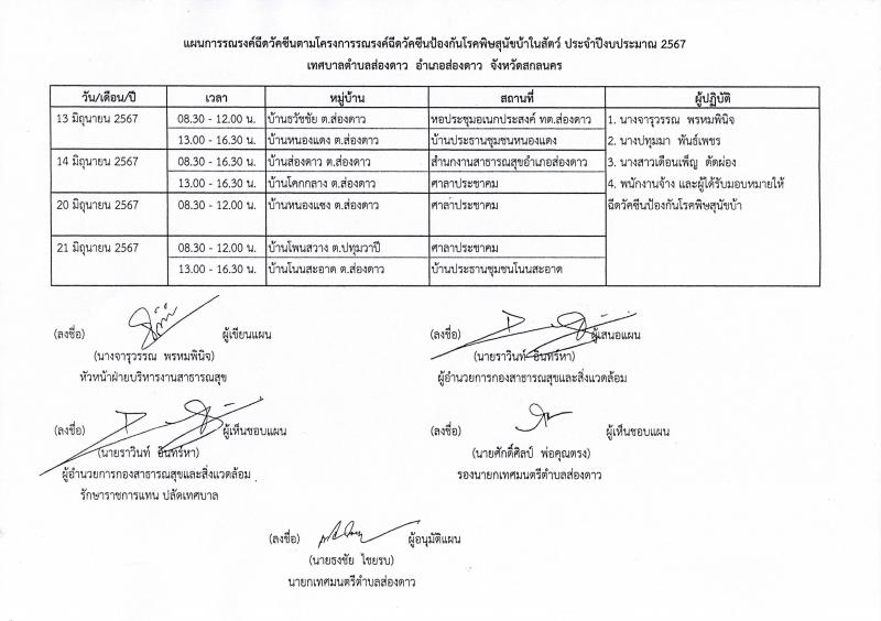 โครงการรณรงค์ฉีดวัคซีนป้องกันโรคพิษสุนัขบ้า ในระหว่างวันที่ 12 - 21 มิถุนายน 2567