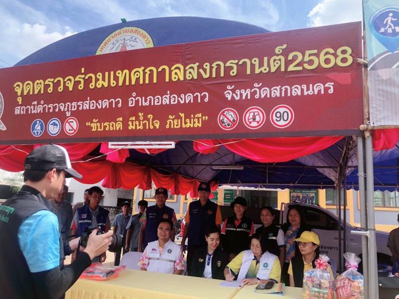 เทศบาลตำบลส่องดาวตั้งจุดบริการประชาชน 7 วันอันตรายช่วงเทศกาลสงกรานต์ ระหว่างวันที่ 11- 17 เม.ย. ประจำปี 2568 ณ บริเวณสามแยกป้อมตำรวจส่องดาว โดยในวันที่ 11 เมษายน เวลา 08.30 น. นายบรรณศักดิ์ จันทมา นายอำเภอส่องดาว เป็นประธานในการเปิดจุดบริการประชาชน