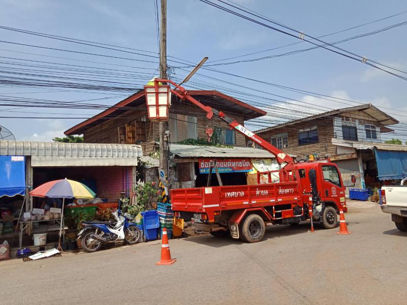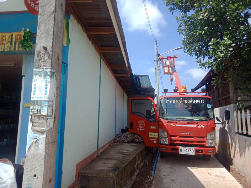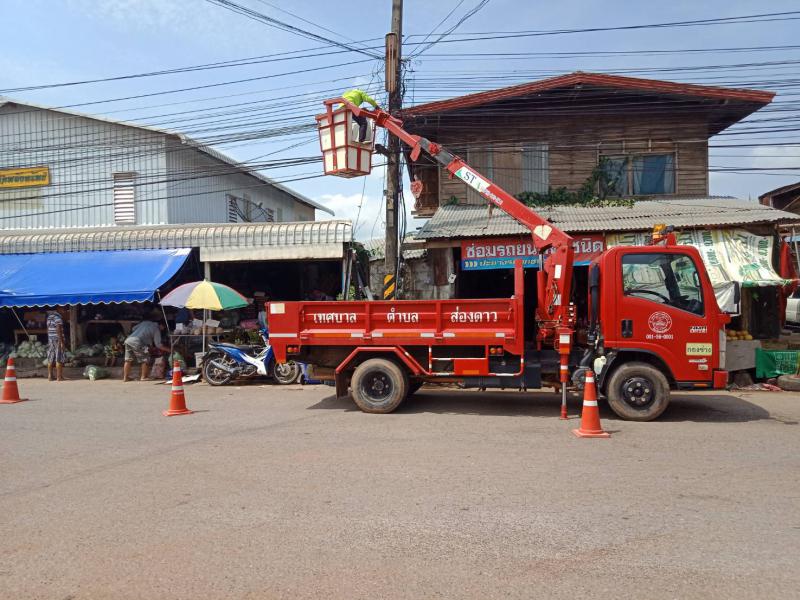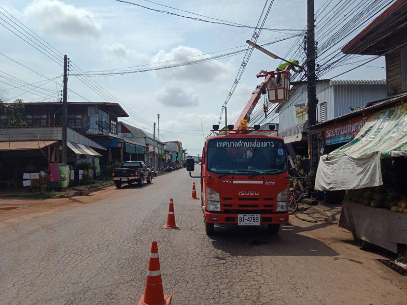 กองช่าง ทต.ส่องดาว ติดตั้งไฟฟ้าแสงแสว่าง ซอยบ้านนายบัวทอง และทำการซ่อมแซมไฟฟ้าแสงสว่างหน้าตลาดสด ทต.ส่องดาว