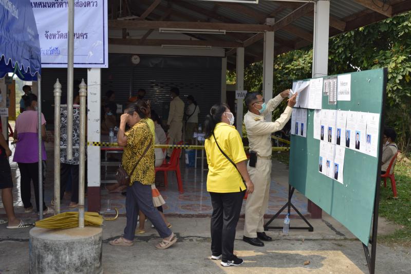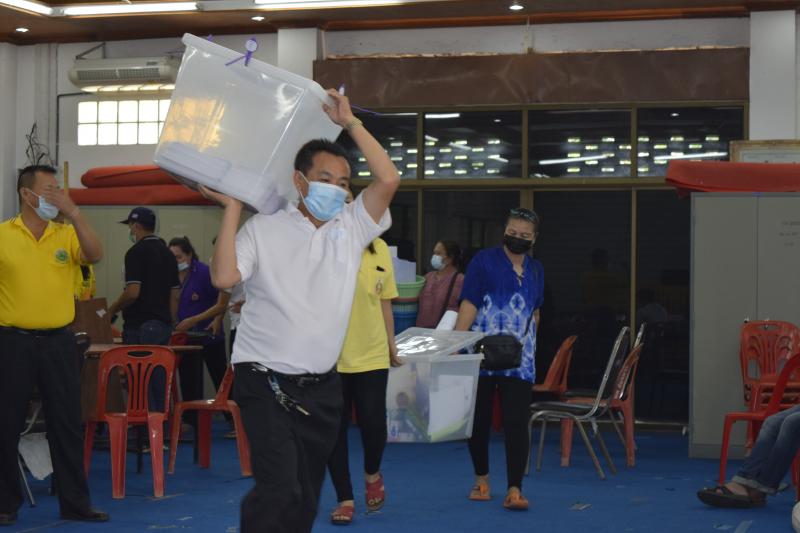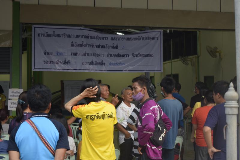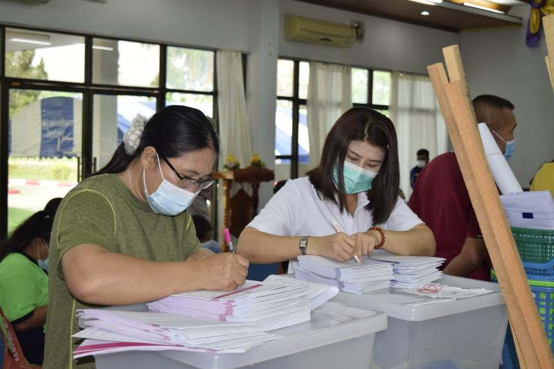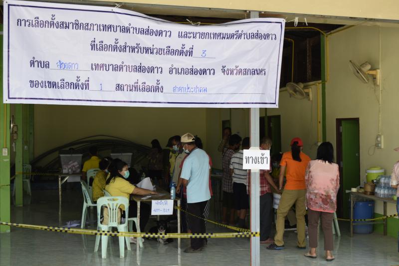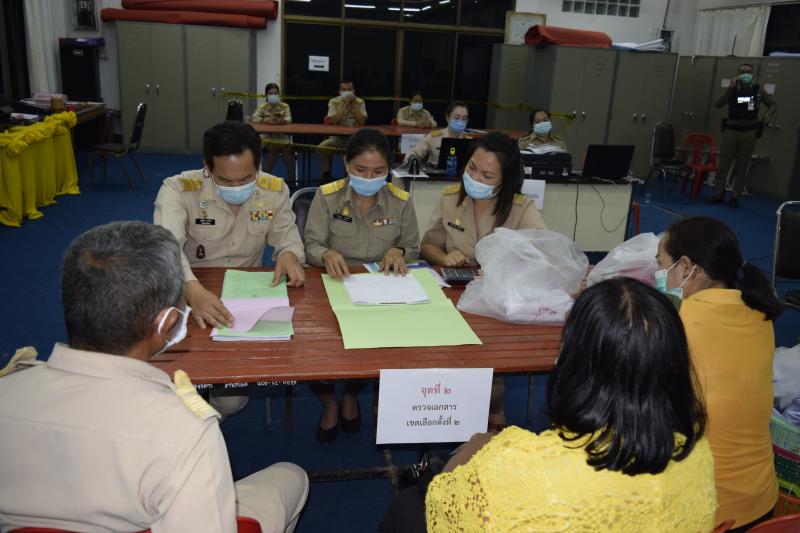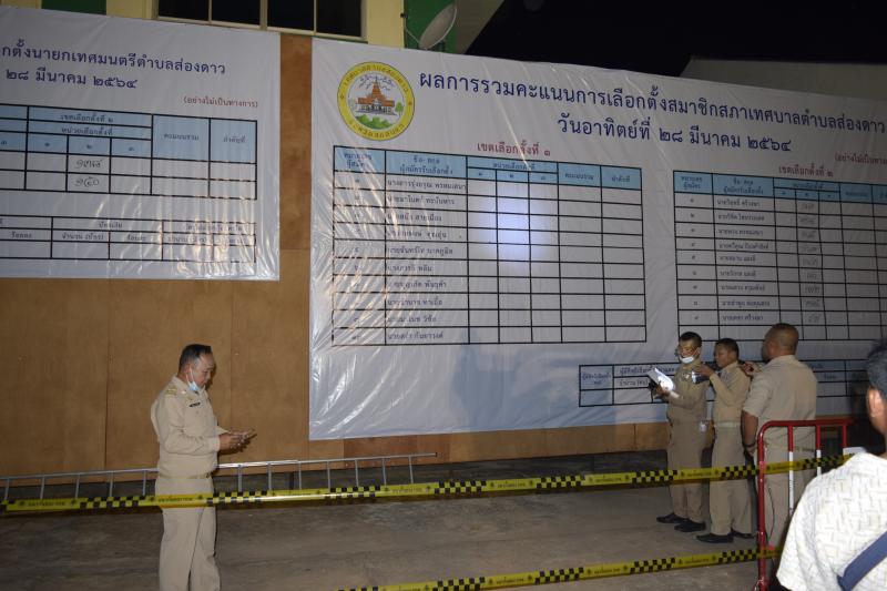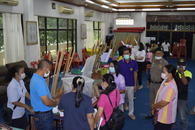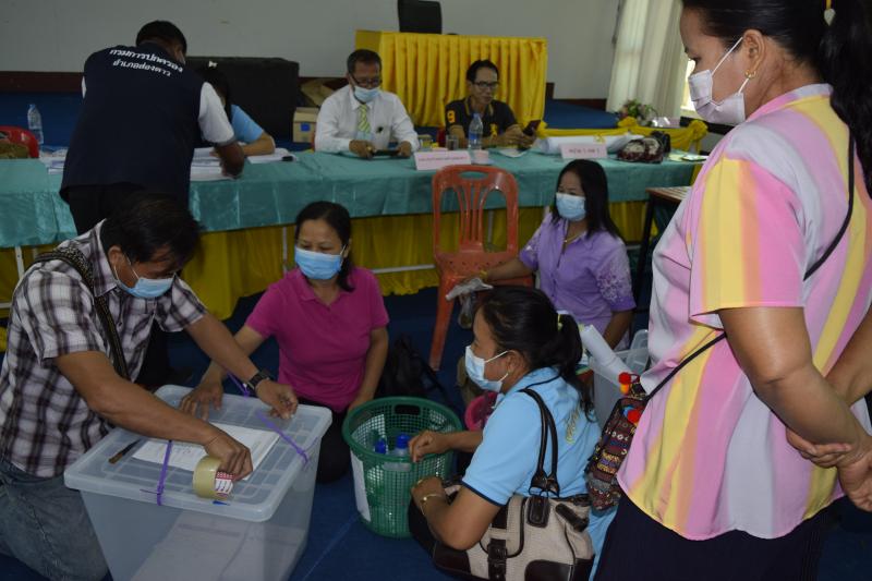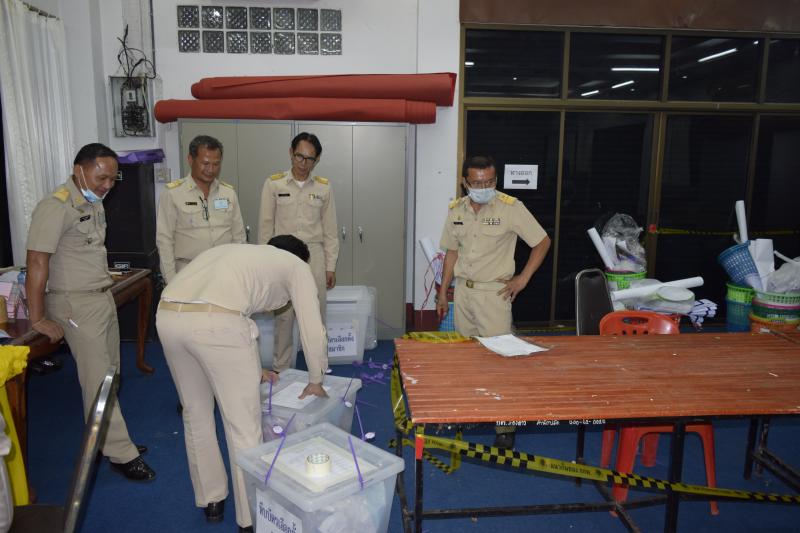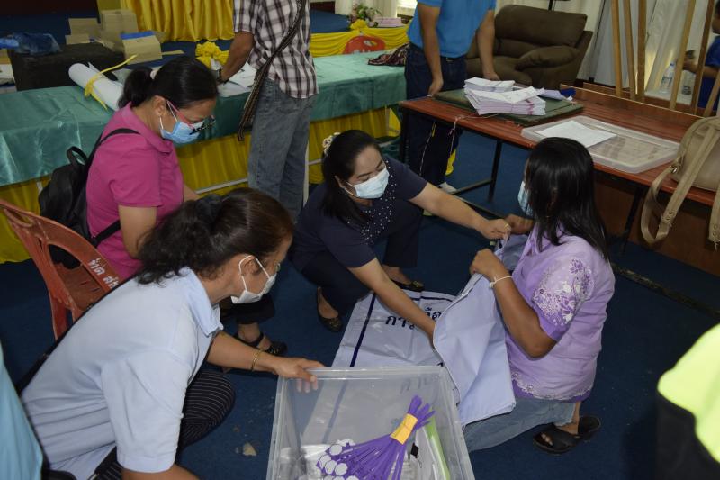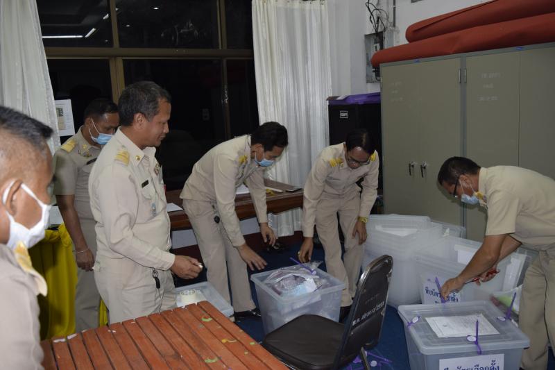 บรรยากาศการส่งมอบหีบ - รับหีบเลือกตั้งนายกเทศมนตรีตำบลส่องดาว และสมาชิกสภาเทศบาลตำบลส่องดาว วันที่ 28 มีนาคม 2564