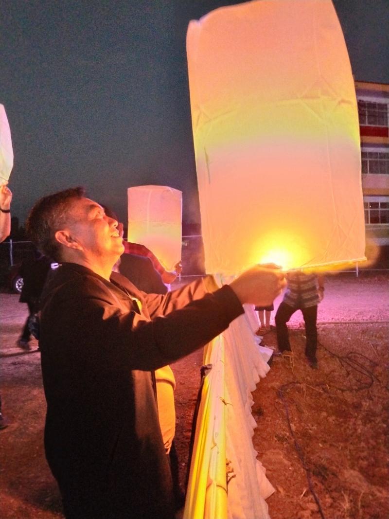 รายละเอียด : วันจันทร์ที่ 27 พฤศจิกายน 2566 นายวิชาญ ดาทุมมา นายอำเภอส่องดาว ให้เกียรติมาเป็นประธานในพิธีเปิดงานประเพณีลอยกระทง ประจำปีงบประมาณ 2567 เทศบาลตำบลส่องดาว โดยมีนายธงชัย ไชยรบ นายกเทศมนตรีตำบลส่องดาว พร้อมด้วยคณะผู้บริหาร สมาชิกสภา หัวหน้าส่วนราขการ ข้าราชการ พนักงาน ลูกจ้าง ผู้นำชุมชน ผู้ปกครอง และนักเรียนโรงเรียนเทศบาลส่องดาว และ ศพด.บ้านหนองแซง ร่วมพิธีเปิดด้วย