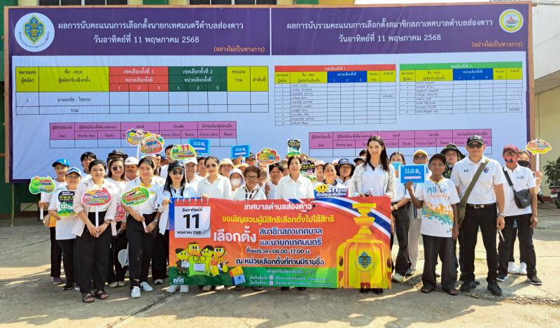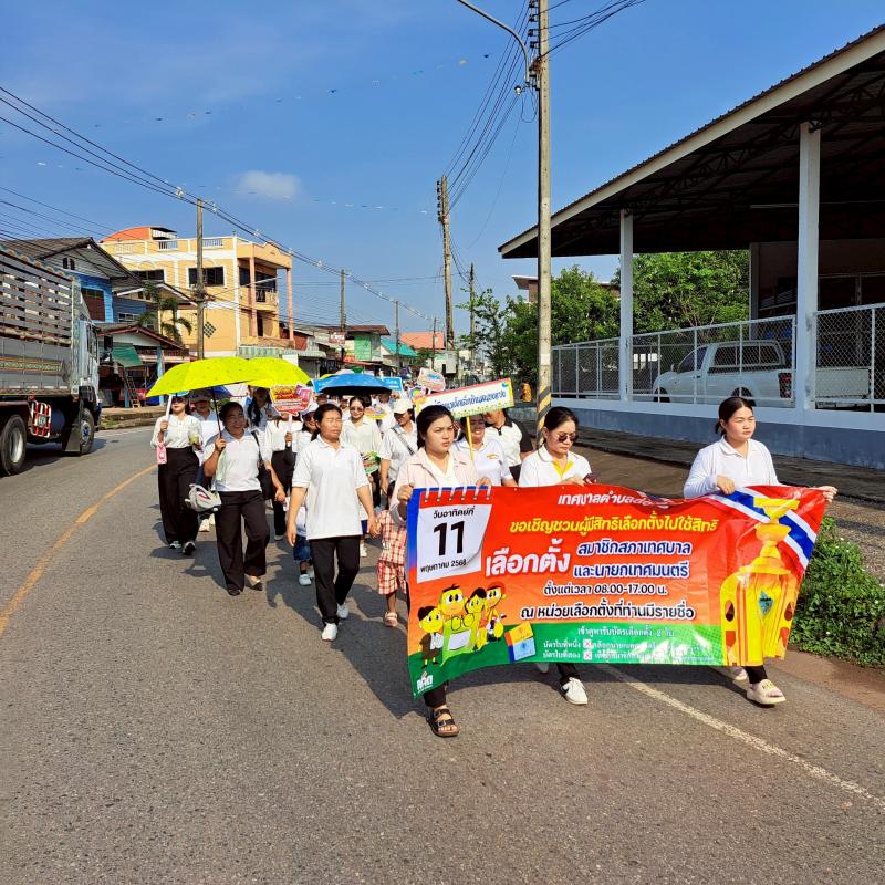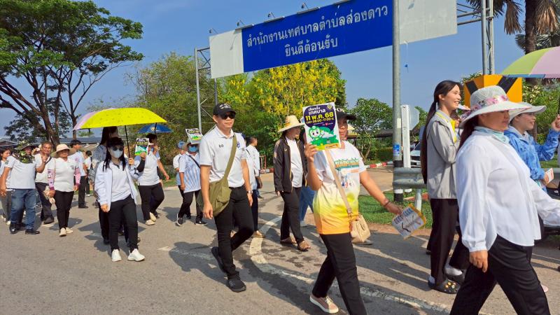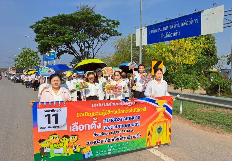 วันที่ 2 พฤษภาคม 2568 เวลา 08.30 น. นายราวินท์ อินทร์หา ผู้อำนวยการการเลือกตั้งประจำเทศบาลตำบลส่องดาว พนักงานเจ้าหน้าที่เทศบาลตำบลส่องดาว คณะกรรมการชุมชนในเขตเทศบาลตำบลส่องดาวทุกท่าน ร่วมเดินรณรงค์ให้ประชาชนในเขตเทศบาลออกไปใช้สิทธิเลือกตั้งสมาชิกสภาเทศบาลและนายกเทศมนตรี เทศบาลตำบลส่องดาว อำเภอส่องดาว จังหวัดสกลนคร ในวันอาทิตย์ที่ 11 พฤษภาคม 2568